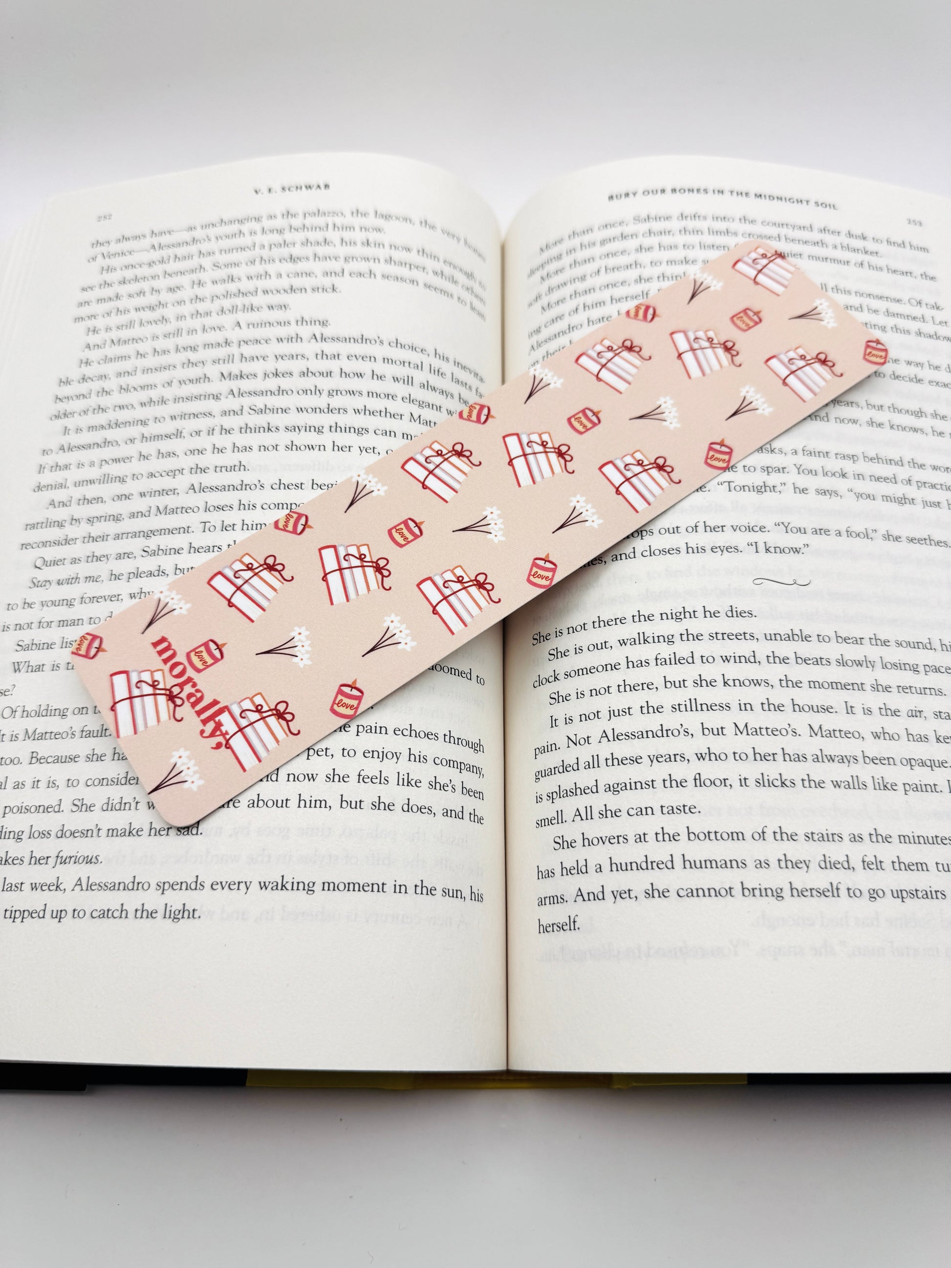 - Features morally, logo on one side of the bookmarks